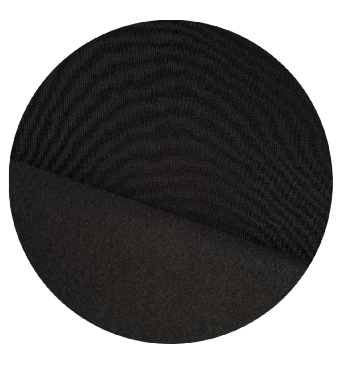 Kosmatena prevešanka enobarvna ČRNA je iz zadnje strani kosmatena in je zelo topla. Primerna je za šivanje toplejših športnih oblačila, oblačil za prosti čas, trenirke, hlače, jopice, puloverje, halje ipd.