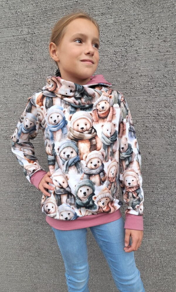 Hoodie kapucar motiv MEDVEDKI, kapucar je izdelan iz mehkega bombažnega blaga in elastana. Je odličen modni kos oblačila za vse vrste aktivnosti. Pride malenkost širši model tako, da se spodaj lahko obleče tudi majčko kratki rokav.