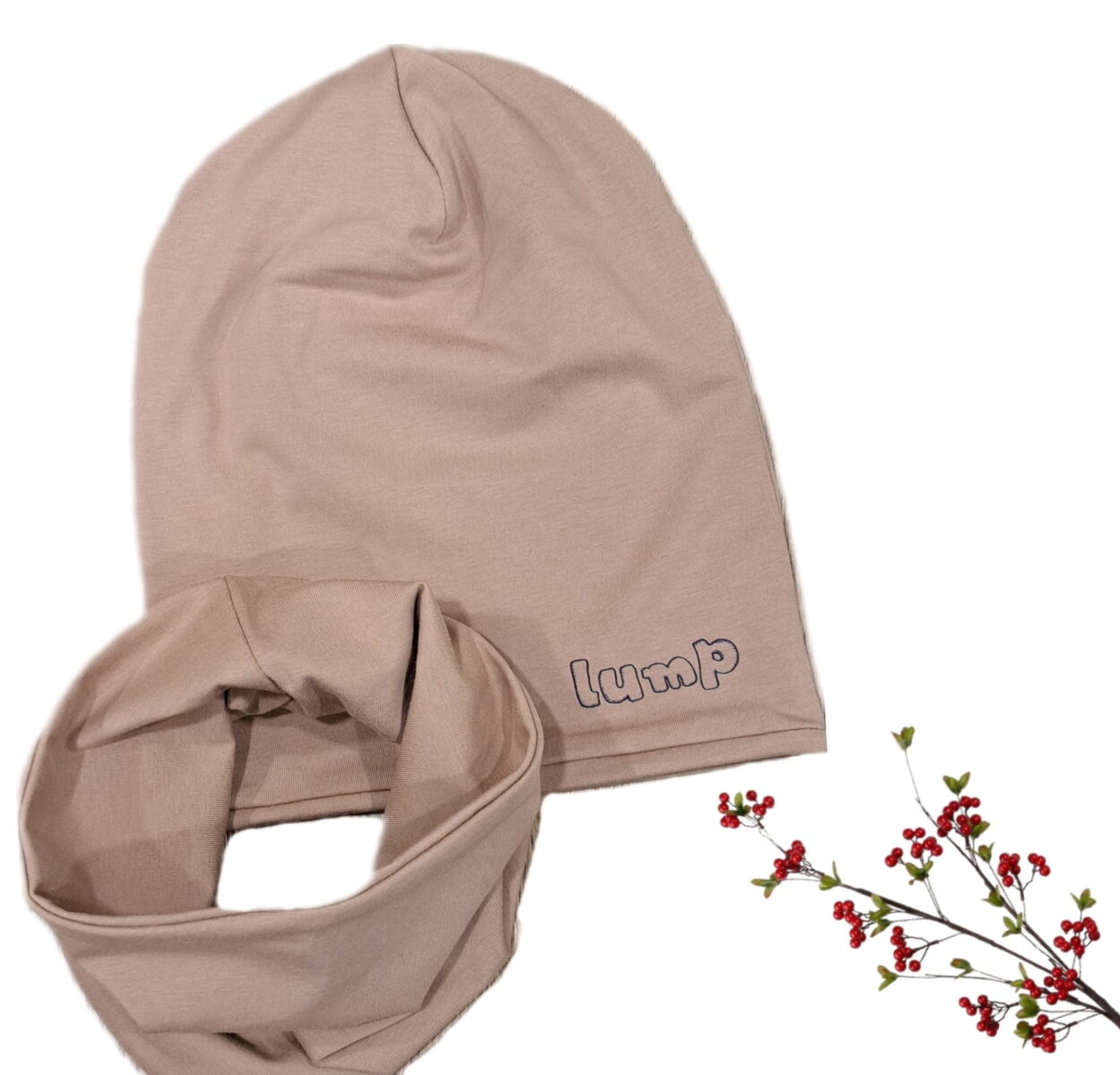 Kompletek s kapo in cevko enobarven v rjavo / bež barvi.
