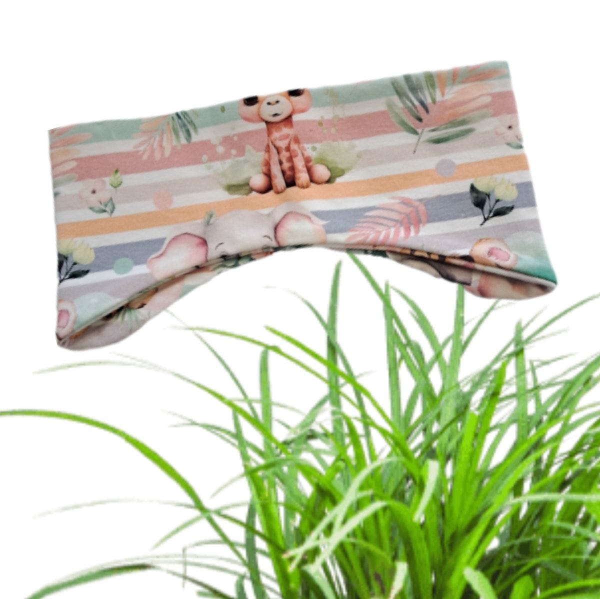 Trak za ušesa SAFARI ŽIVALI 2-4 leta je izdelan iz jerseya ali prevešanke. Trakec je pri ušesih širši in jih zelo lepo pokrije.