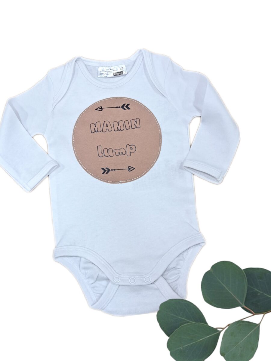 Body-ji z napisom MAMIN LUMP za fantke so iz bombaža, kar pomeni, da so zelo mehki in udobni. Bodiji so gosto tkani in so zelo kvalitetni. Body ni ročno izdelan – je kupljen, mi pa vam ga z veseljem potiskamo.