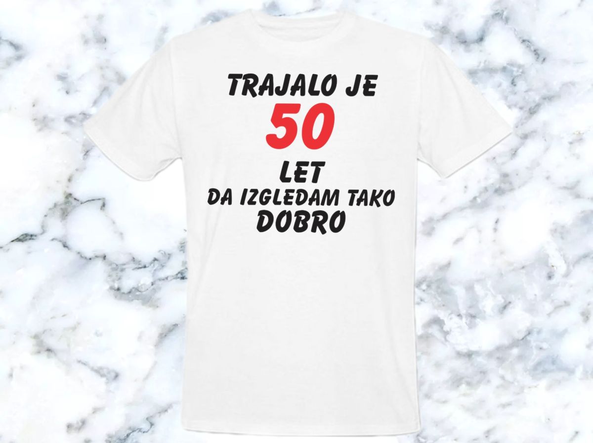 Majica 50 je iz bombaža. Majica ni ročno izdelana-je kupljena, mi pa vam jo z veseljem potiskamo. Za ta napis je majica dobavljiva v beli barvi.